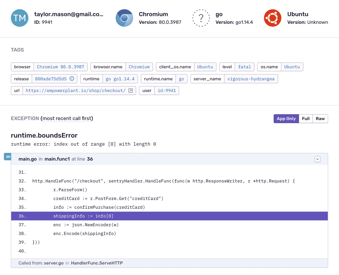 Debug Go apps and prevent crashes across your entire stack. Trace Go performance issues back to a poor performing API call and surface any related code errors. Sentry provides a single platform to optimize the performance of Go code and deliver fast customer experiences.