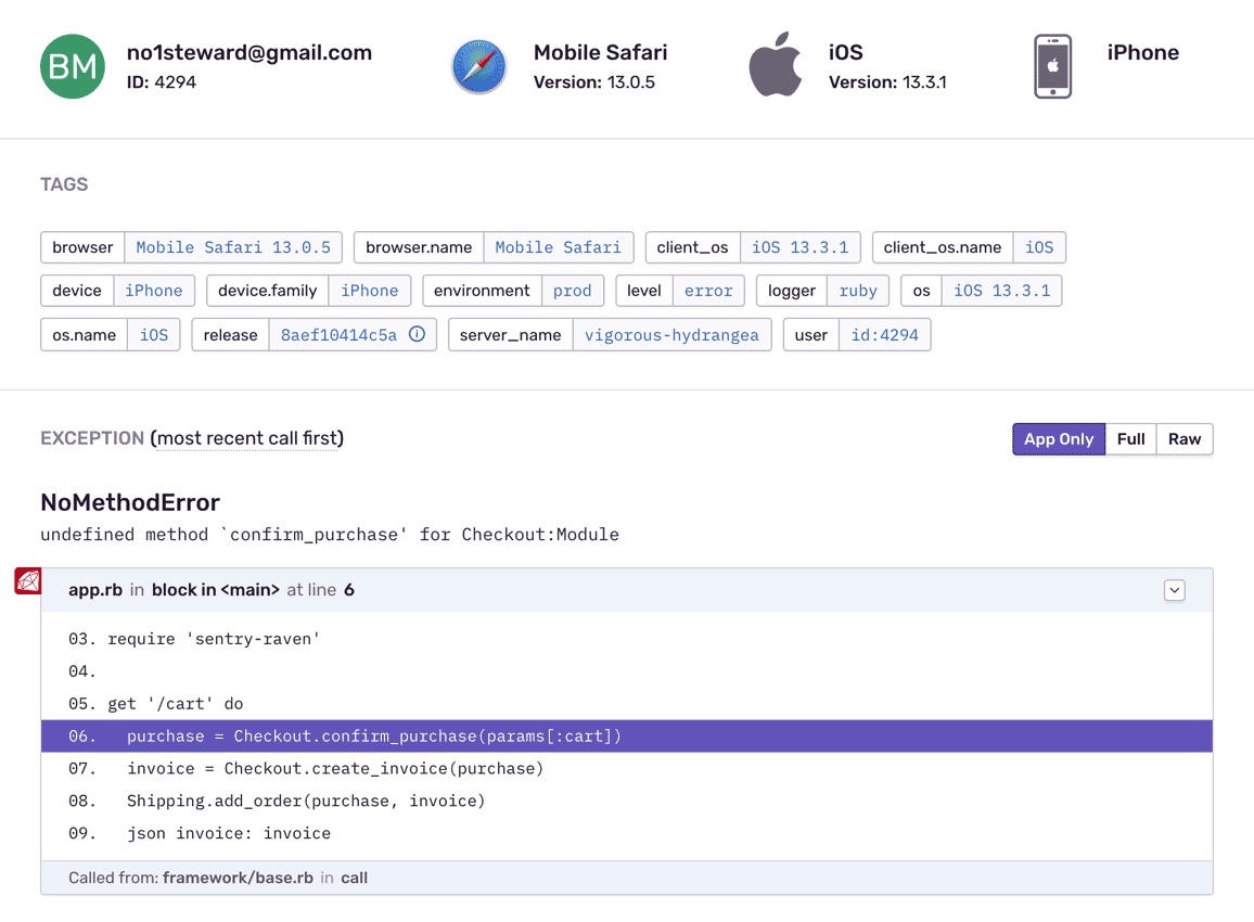 Actionable insights to resolve Ruby performance bottlenecks and errors. Improve your Ruby monitoring workflow with a full view of releases so you can mark errors as resolved and prioritize live issues.