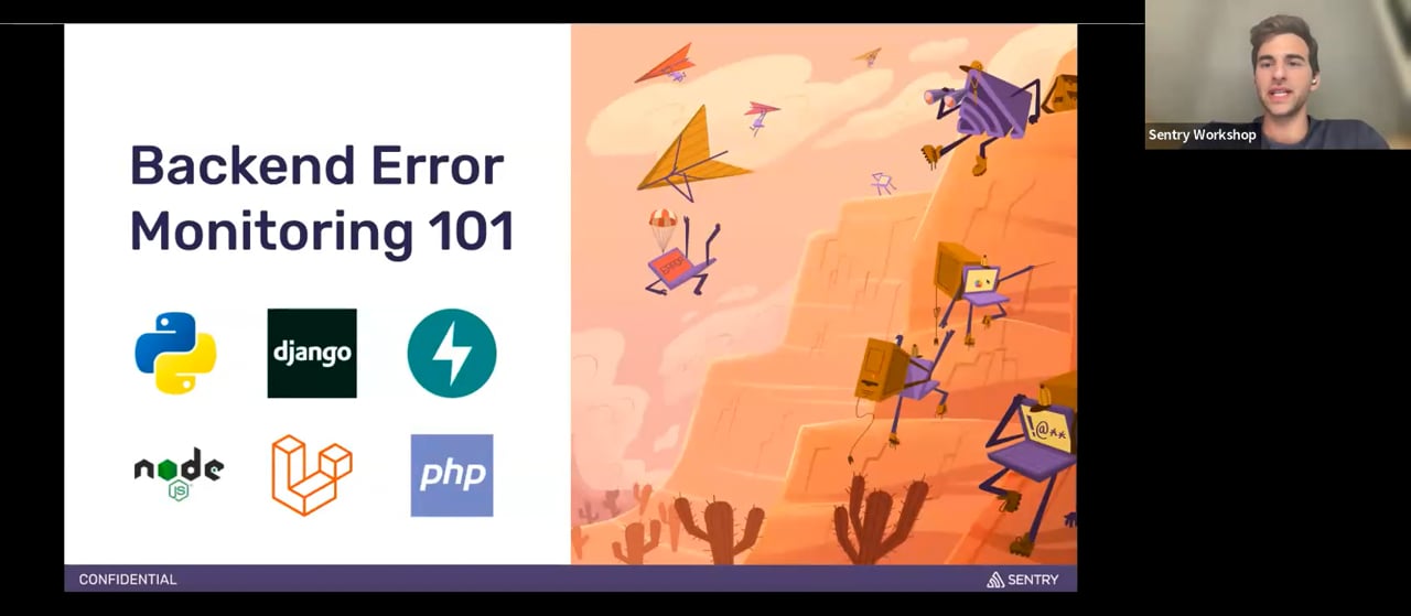 Learn the basics of error monitoring on Sentry through a live demo with an example Python app. Whether you are running a Python, PHP, Node.js, Ruby, Go or one of the other 140+ platforms Sentry supports, Sentry can help you find the who, what, when and where behind errors in your backend project. This session covers: