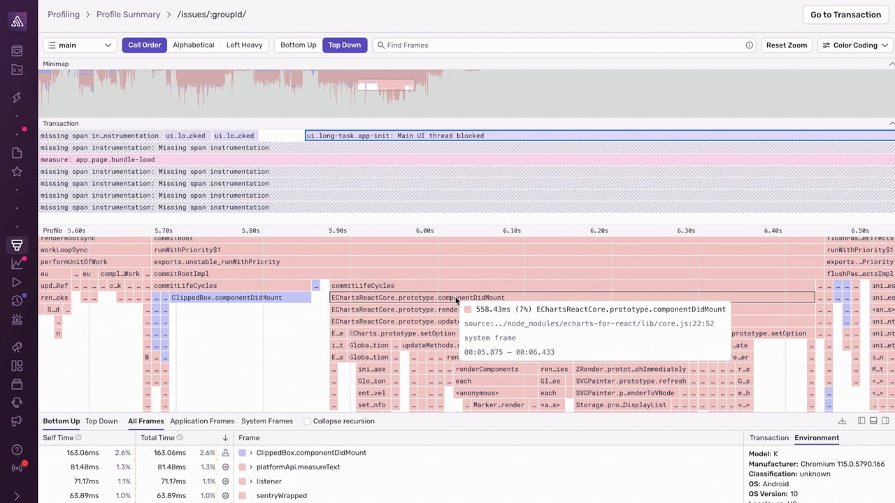 Extracting relevant insights from your performance monitoring tool can be frustrating. You often get back more data than you need, making it difficult to connect that data back to the code you wrote. Sentry’s Performance monitoring product lets you cut through the noise by detecting real problems, then quickly takes you to the exact line of code responsible. The outcome: Less noise, more actionable results.