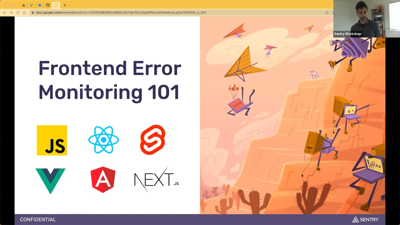 If finding errors in your frontend project is like searching for a needle in a code haystack, then Sentry error monitoring can be your metal detector. Learn the basics of error monitoring with Sentry. Whether you are running a React, Angular, Vue, or just “vanilla” JavaScript, see how Sentry can help you find the who, what, when and where behind errors in your frontend project. This session covers: